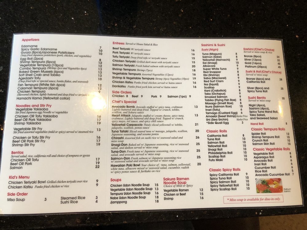 Sakura Sushi Menu
